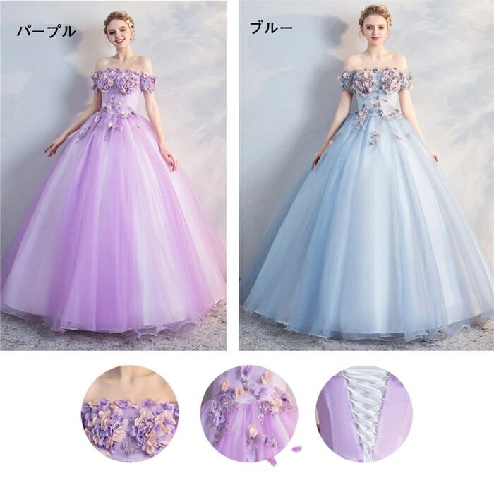 カラードレス 演奏会用ドレス ロングドレス ドレス パーティードレス ウェディングドレス 二次会 花嫁 大人 編上げ 春夏 秋冬 結婚式 披露宴 ウエディング 大きいサイズ パーティー 演奏会 お嫁さん 花嫁 パープル ブルー