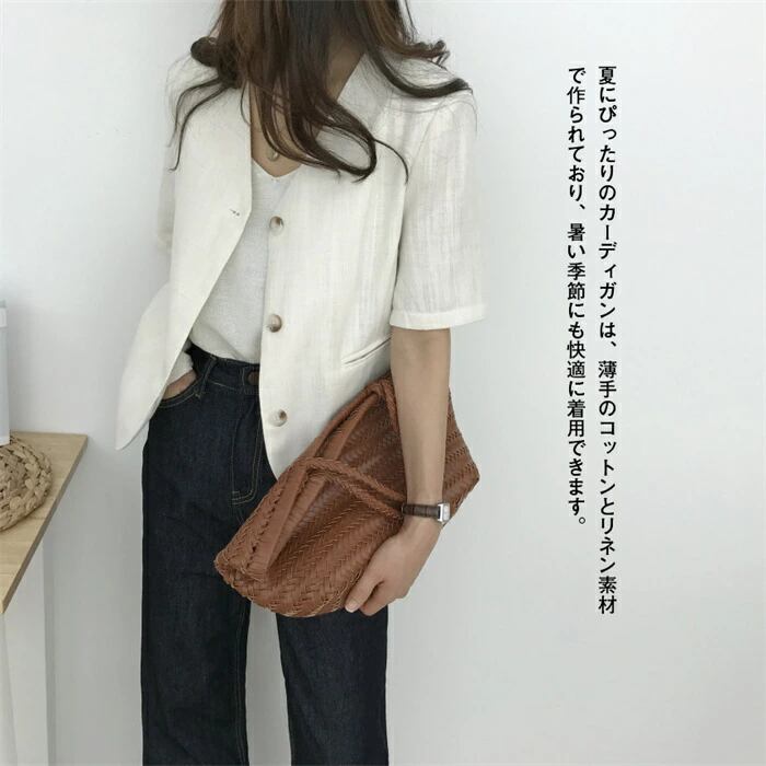 綿麻 カーディガン レディース 半袖カーディガン 薄手 仕事 おしゃれ 夏にぴったりのレディース半袖コート S-XL