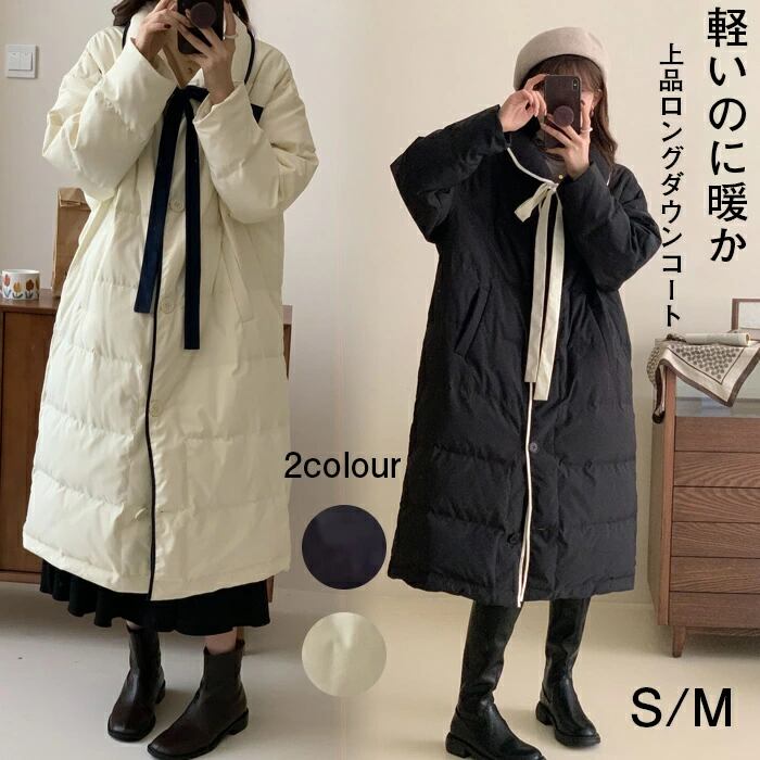 ダウンコート レディース ロング丈 超軽量 薄手 ブラック 黒 ホワイト 白 スタンドカラー ダウン コート 撥水 新作 大人 保温 防風 防寒 暖かい 軽い 可愛い デイリー 秋 冬 アウター カジュアル ギフト プレゼント