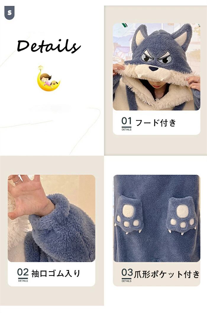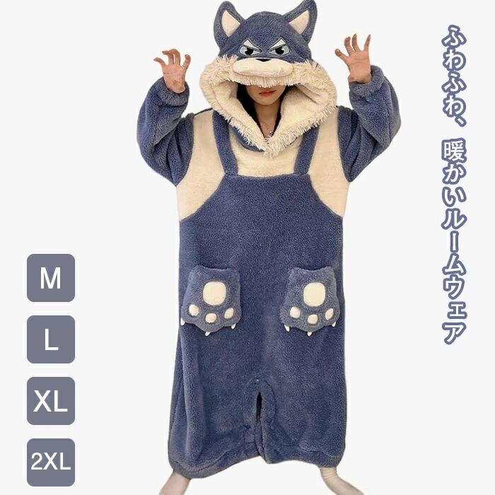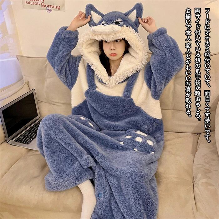 着ぐるみパジャマ レディース オオカミ 狼柄 おおかみ ルームウエア フード付き パジャマ きぐるみ 長袖 ふわふわ アニマル 動物 仮装 おもしろ プレゼント 部屋着 M-2XL