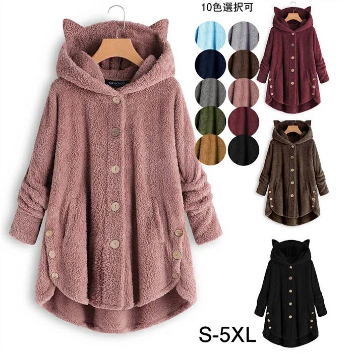 パーカー レディース 裏起毛 カットソー バイカラー ボアジャケット Aライン 猫柄 かわいい 秋服 冬用 フード フルジップブルゾン パッチワーク ミドル丈 前開き スウェット パーカー コート 羽織り ゆったり ルームウェア 柔らか S-5XL