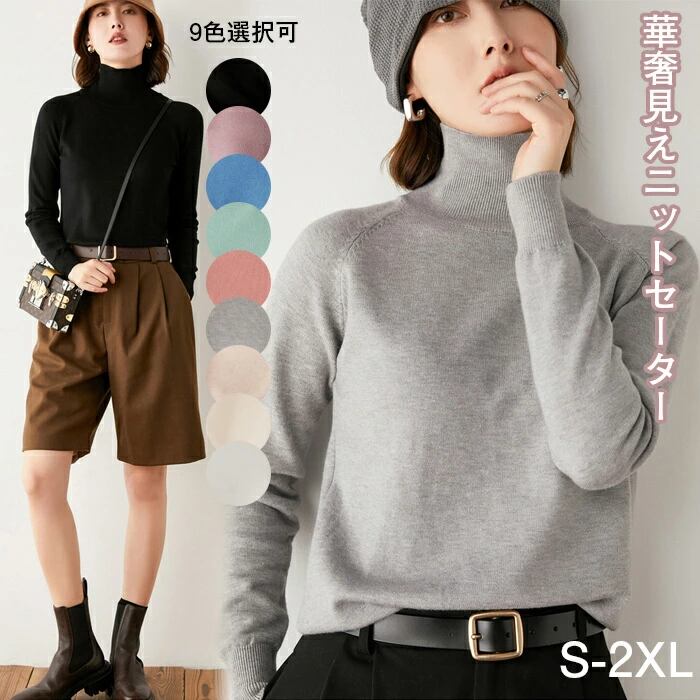 ニット トップス レディース セーター ハイネック ニットソー カットソー 小顔 柔らかい 重ね着 高伸缩 薄手 無地 長袖 通勤 カジュアル シンプル 保温 秋 冬 秋冬 S-2XL