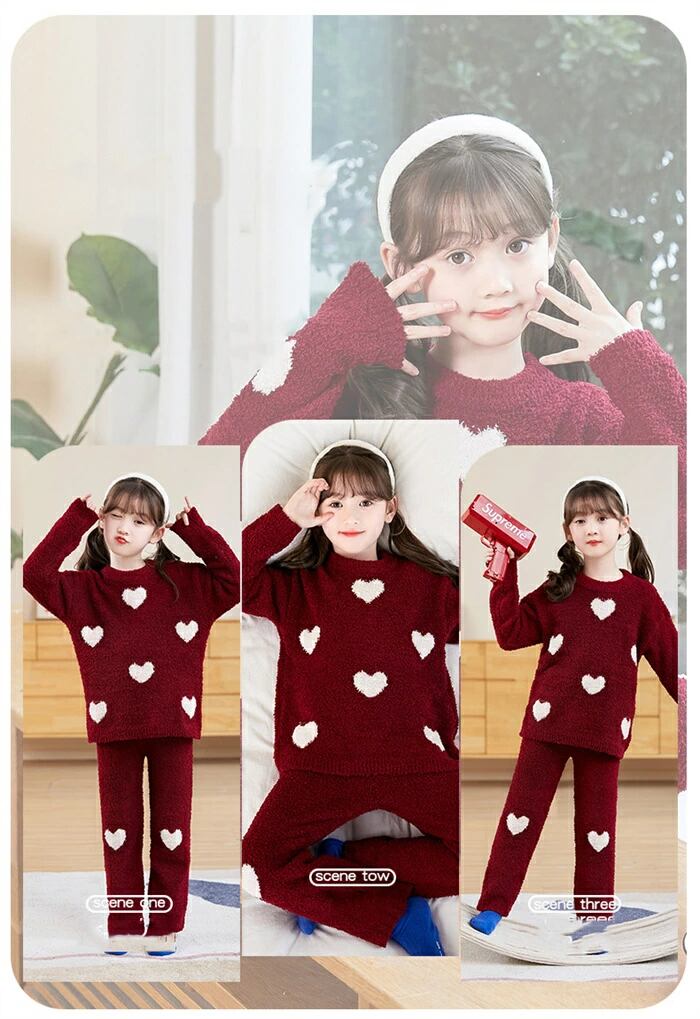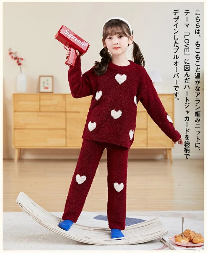 ルームウェア ハートアランプルオーバー パジャマ レディース キッズパジャマ プルオーバーパジャマ 長袖 ルームウェア 裏起毛 着る毛布 上下セット 暖かい 部屋着 秋冬 110-160