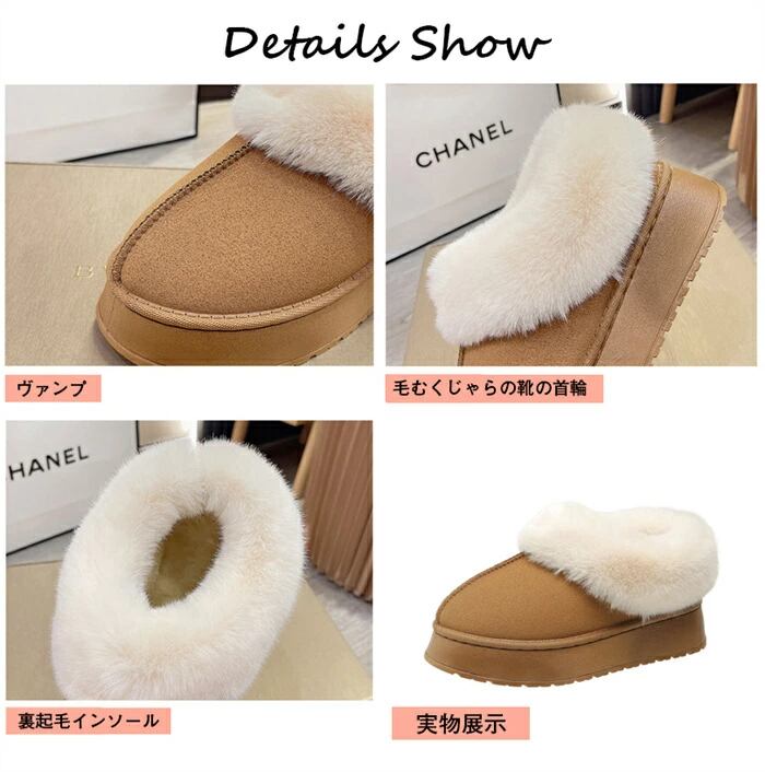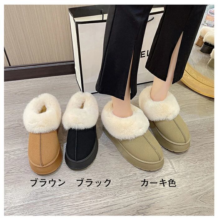 ムートンブーツ ショート丈 レディース ファー付き 裏起毛 厚底 暖かい 保温 防寒 おしゃれ フェイクムートン 春 秋 冬 23.0~25.5