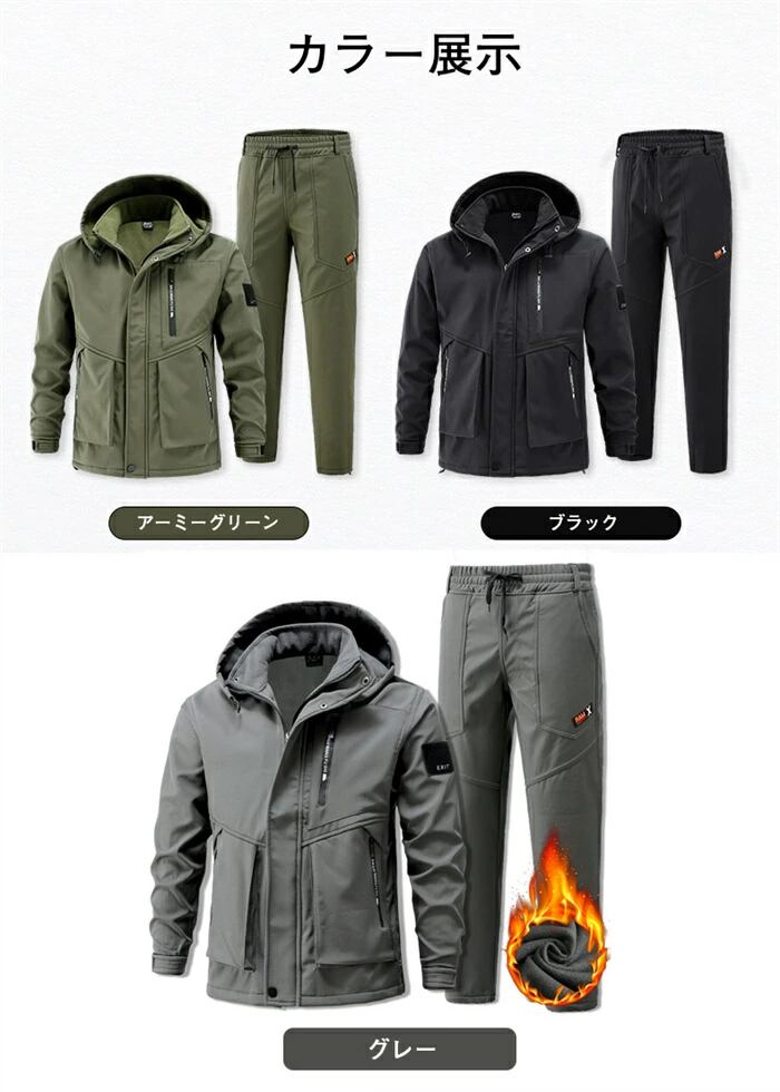 登山ジャケット 冬服 コート メンズ 防寒 防風 防撥水 上下セット ズボン 裏起毛 ウィンドブレーカー メンズ マウンテンパーカー アウトドアウェア アノラック スキー 春秋冬 S-3XL