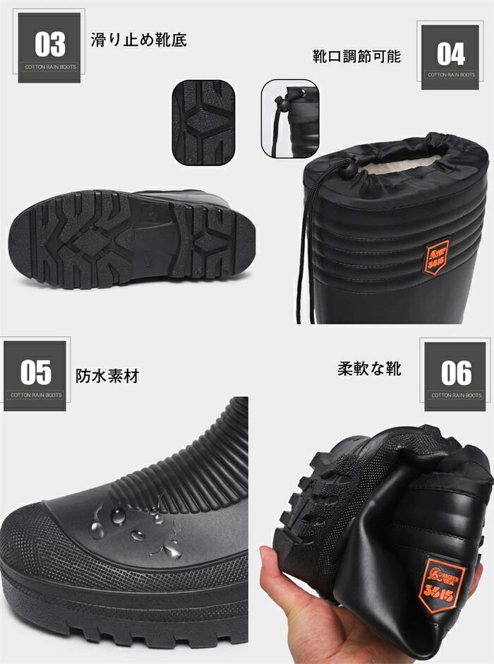 長靴 防寒 メンズ 軽量 暖か レインブーツ 多機能防寒長靴 防寒 メンズ 紳士 男性用 雪冬 防滑 防寒ブーツ スノーブーツ 冬用 防水 防滑 裏起毛 ボア 保暖 ショートブーツ 24.0-28.0