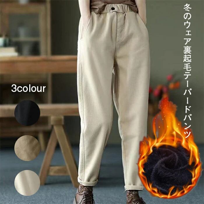 テーパードパンツ 冬 裏起毛 レディース パンツ 快適 裏ボア ズボン 保温 もこもこ