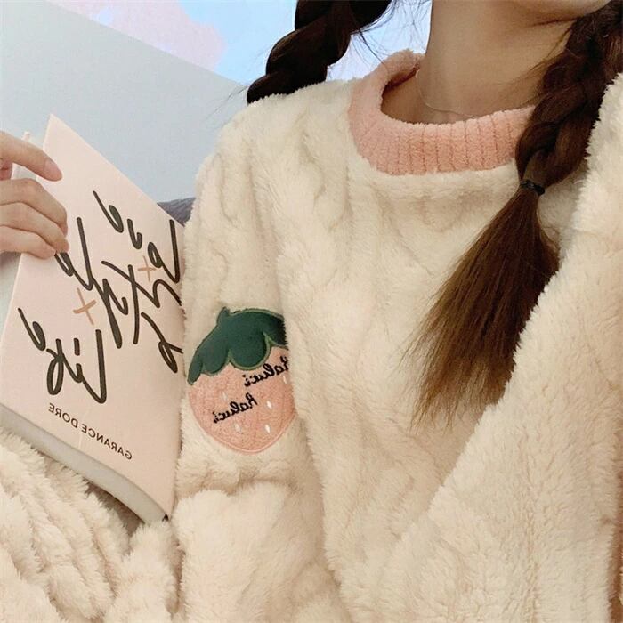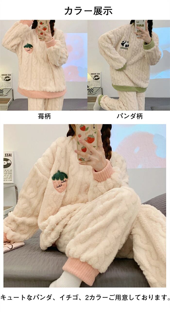 パジャマ レディース ルームウェア ふわふわ セットアップ もこもこ あったか フランネル 可愛い パンダ 苺柄 女性用 ホームウエア 上下セット 部屋着 室内着 長袖パジャマ 2点セット 防寒 保温 秋 冬 軽量 プレゼント M-2XL