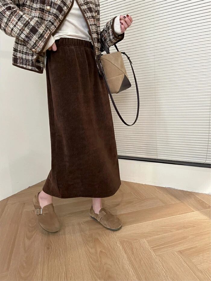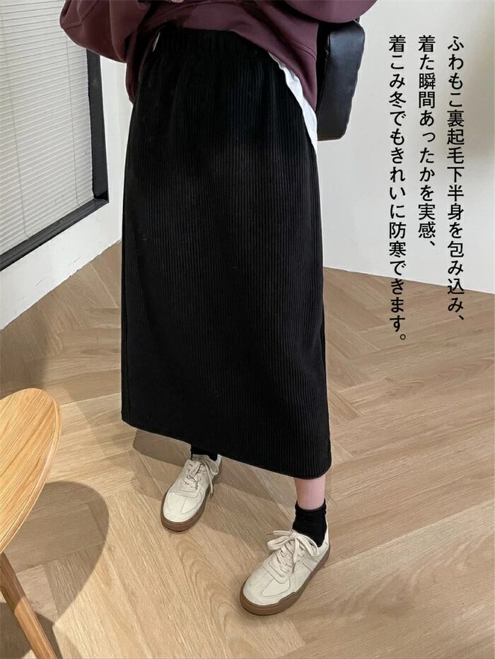 スカート ロング レディース 裏起毛 リブ Iライン スリット 冬 秋 ゆったり カジュアル 暖かい M L