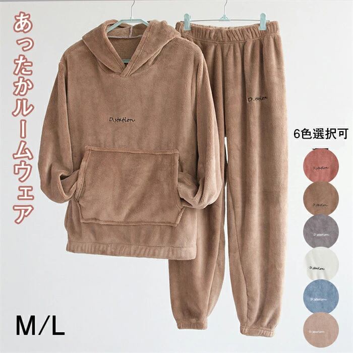 ルームウェア セット モコモコ レディース 冬 裏起毛 パーカー 防寒 パジャマ ルームウェア ふわふわ 軽量 フード付き 部屋着 あったか 秋 冬 セットアップ 長袖 暖かい 可愛い M L