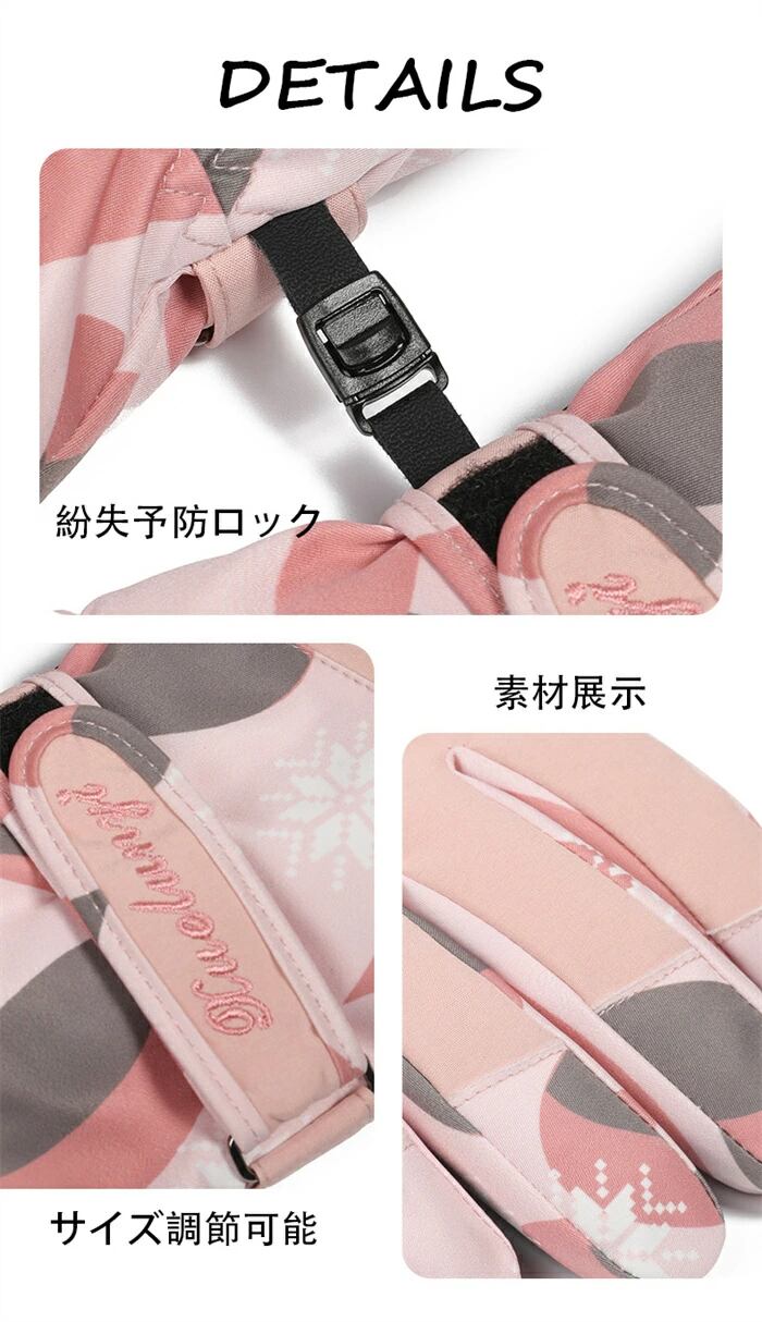 スキーグローブ レディース 防寒手袋 タッチパネル対応 防水 防風 防寒 滑り止め 冬手袋 雪かき手袋 防寒グローブ スノーボード グローブ バイクグローブ 女性 子供 紛失予防 撥水加工 保温 厚手 除雪 アウトドア 登山 フリーサイズ