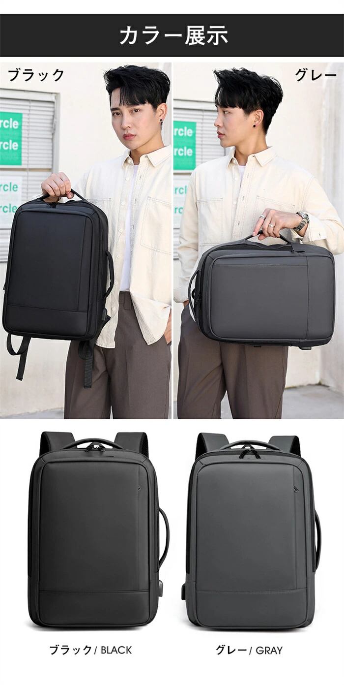 リュック ビジネスリュック メンズ 3way リュックサック バックパック 防水 15.6インチ PCリュック マチ拡張 大容量 A4収納可 撥水加工 収納多ポケット USB充電ポート 耐衝撃 ビジネスリュック リュック バック 通勤 出張 旅行 通学