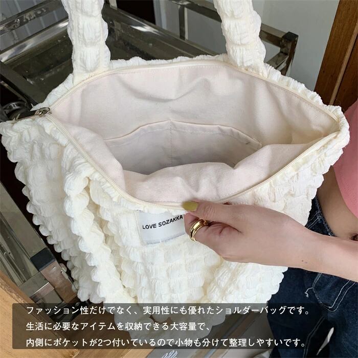 ポップコーンバッグ トート キルティングバッグ レディース ショルダーバッグ シャーリング 可愛い 軽量 手提げ ファスナー付き おしゃれ 凸凹 通勤 通学 大容量